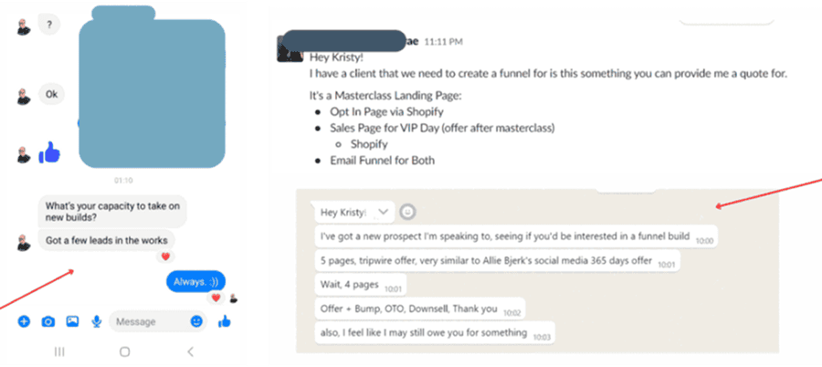Check out my constant requests to build funnels for clients – you put out great work, and they’ll come back because they trust you and your work. And that’s exactly what I teach my students.